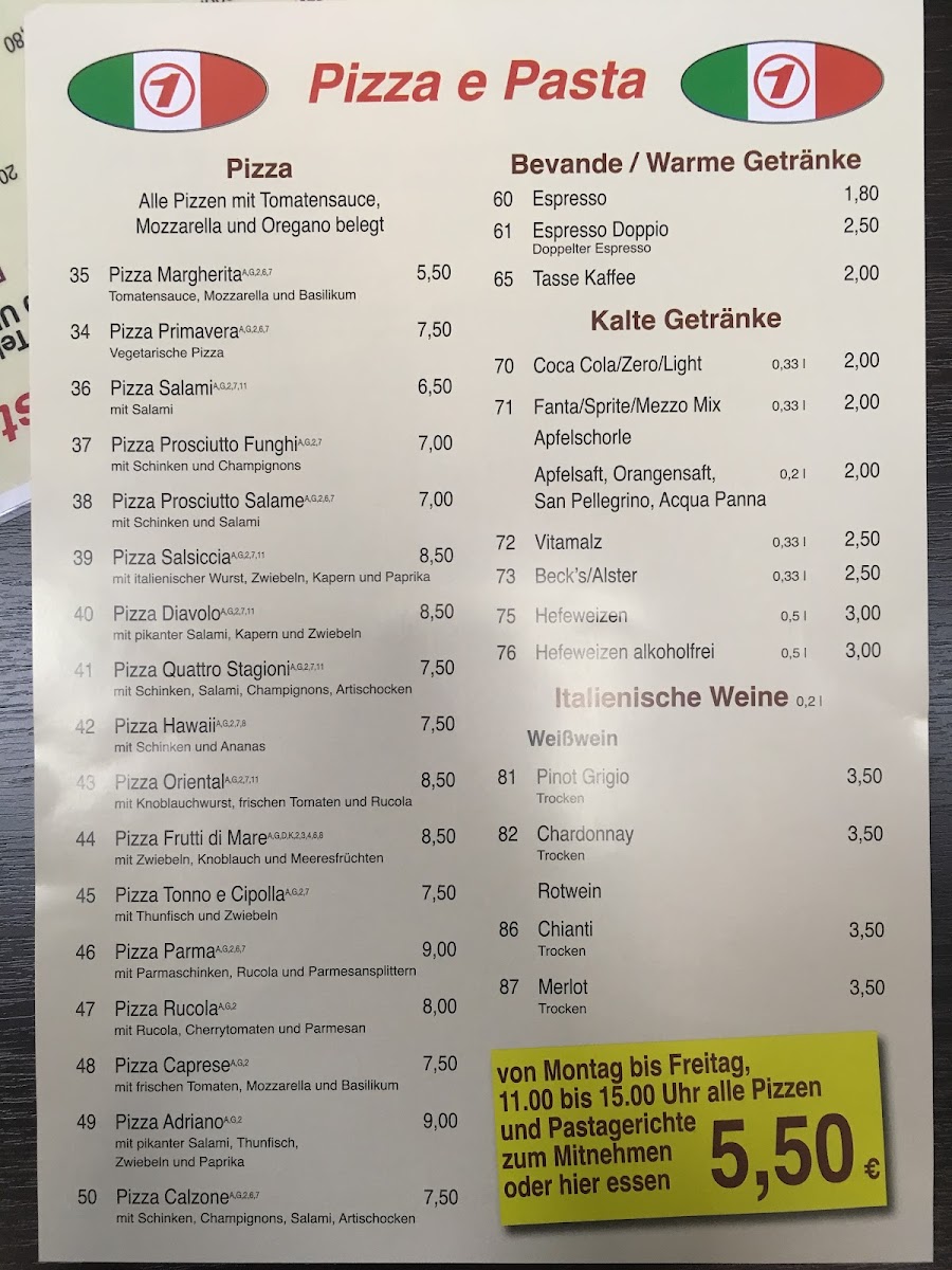 The pasta selection complements the pizzas nicely rather than competing with them. Spaghetti Carbonara is rich and comforting, offering a creamy texture that feels indulgent without being overwhelming. The menu’s Leckere Pasta options reinforce the restaurant’s focus on hearty, satisfying meals that suit both quick lunches and relaxed dinners. To start, the Vorspeisenplatte works well as a shared appetizer, giving a broad introduction to the kitchen’s style before moving on to main dishes. Drinks are kept straightforward, with Becks Bier fitting naturally alongside the pizzas and pasta, rounding out the menu in a way that feels casual, cohesive, and true to its Italian-inspired concept.
